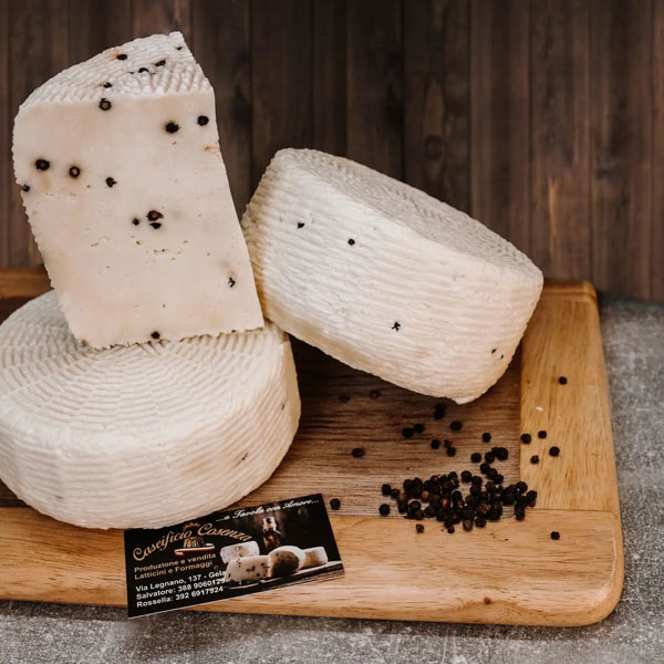 Formaggio pecorino detto primo sale e secondo sale. Il formaggio pecorino trova un ampio utilizzo, come formaggio da grattugiare per insaporire primi piatti o in abbinamento a tutto ciò che di casereccio può bandire la vostra tavola. Il pecorino prodotto, dal Caseificio Cosenza, è esclusivamente lavorato con latte di pecora fresco e crudo per mantenere inalterato il sapore e presentato con una tipica forma cilindrica ed un caratteristico sapore intenso. Il pecorino si distingue nelle seguenti categorie: tuma, primo sale fresco, semistagionato e stagionato. La differenza fra le quattro dizioni sta essenzialmente nel tempo di stagionatura e nella salatura. Il formaggio viene conservato in ambiente fresco a una temperatura ideale di 4°C. Il caseificio propone specialità di pecorino diverse: pecorino con pepe nero, pepe rosso, senza pepe, con pistacchio, con noci, con olive, con patè di olive nere, con capuliato (pomodoro secco), con pesto di basilico e pepe rosso e pecorino Ghiotto (rucola, olive e pepe rosso).